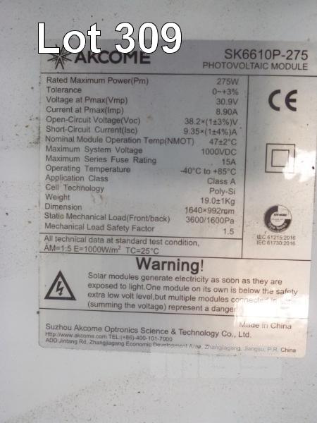 6 x SOLAR PANELS, AKCOME MOD: SK6610P-275 275w 1640 x 992mm