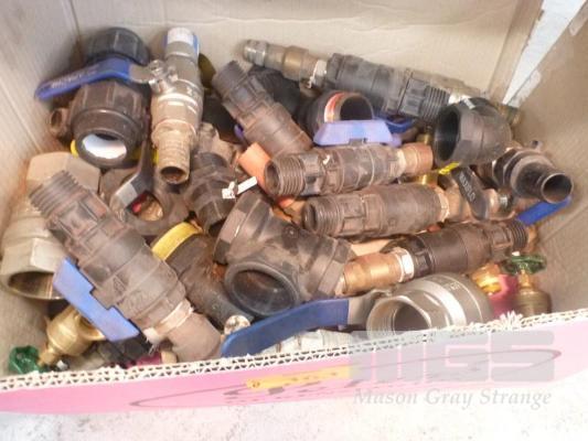 ASSORTED IRRIGATION FITTING & VALVES, BRASS, GALV, POLY, 1 x BOX