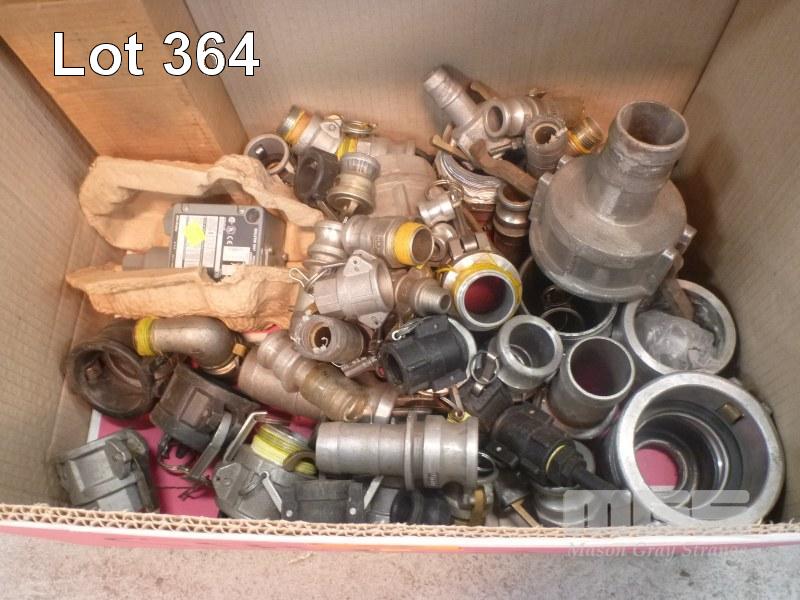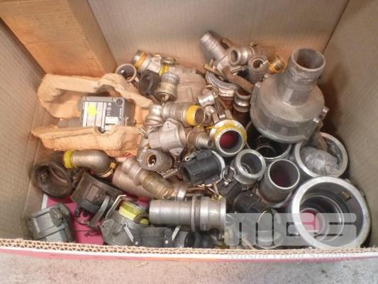 ASSORTED HOSE CAM LOCK FITTINGS, ALLOY, GALV & POLY, 1 x BOX WITH BULLETIN 836T PRESSURE CONTROL