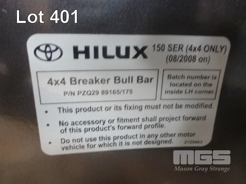 TOYOTA HILUX SR5 BULL BAR, NEW WITH FITTING KIT, BLACK STEEL PART NO: PZQ2986165\175