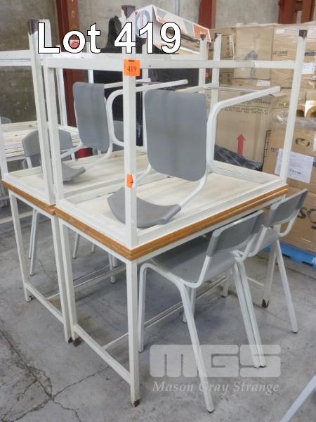4 x TECH BENCHES, STEEL FRAME, 120 x 60 x 85cm (H) WITH 8 x TECH CHAIRS, 62cm (H)