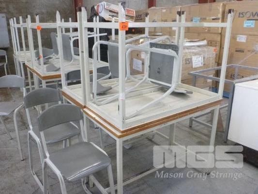 4 x TECH BENCHES, STEEL FRAME, 120 x 60 x 85cm (H) WITH 8 x TECH CHAIRS, 62cm (H)