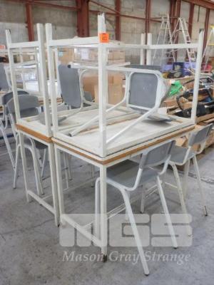 4 x TECH BENCHES, STEEL FRAME, 120 x 60 x 85cm (H) WITH 8 x TECH CHAIRS, 62cm (H)