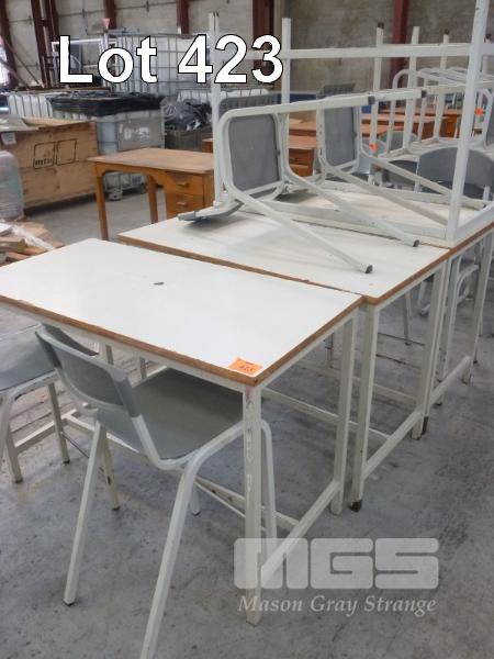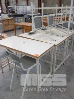 4 x TECH BENCHES, STEEL FRAME, 120 x 60 x 85cm (H) WITH 8 x TECH CHAIRS, 62cm (H)