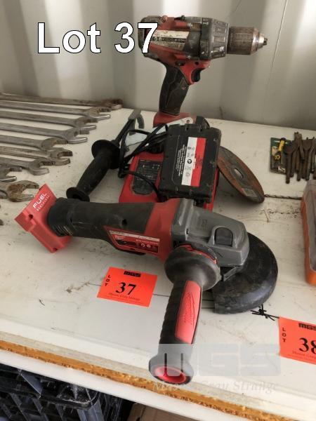 MILWAUKEE CORDLESS DRILL & MILWAUKEE ANGLE GRINDER WITH CHARGER, 2 x 4.0AH BATTERY