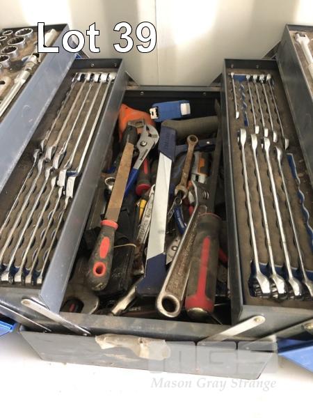 KINCROME TOOL BOX & TOOL SET, 1/3, 3/8 & 1/2" SOCKETS & DRIVE SPANNERS & HAND TOOLS