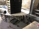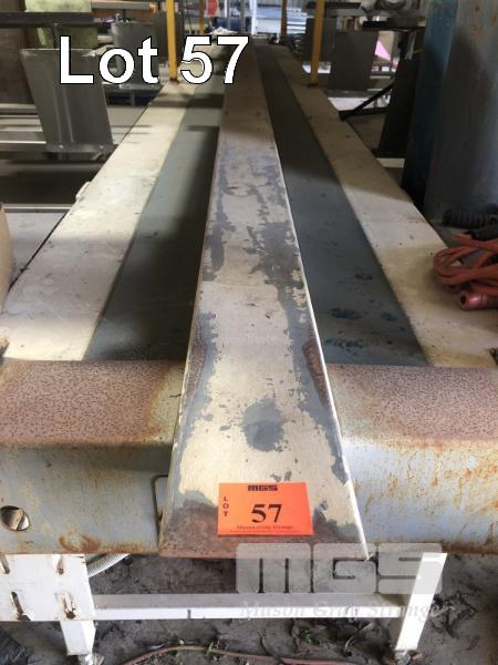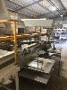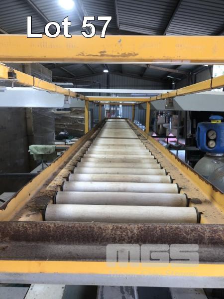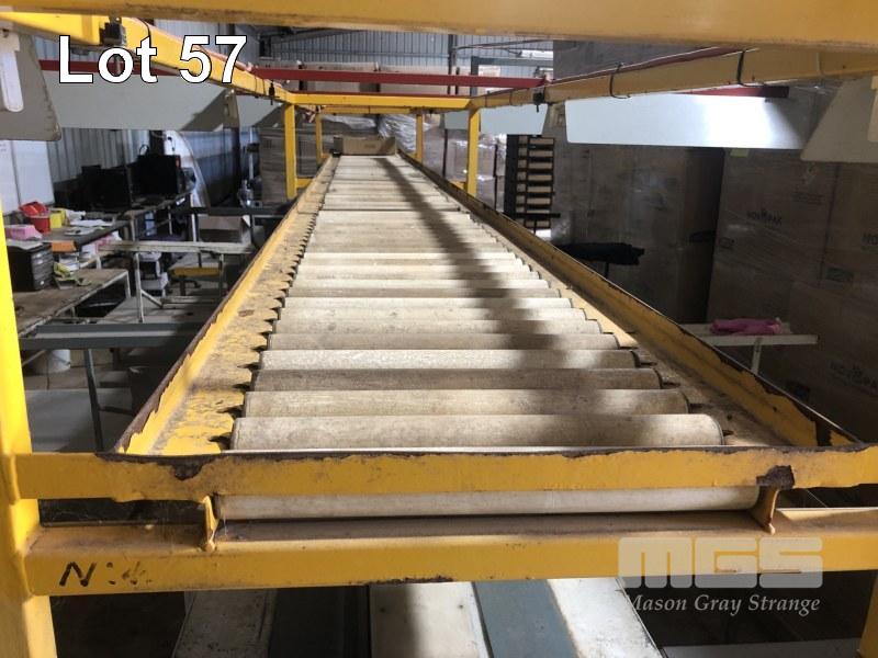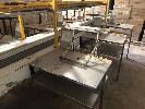 PACKING LINE 2 x 8 STATION UNITS DOUBLE SIDED, APPROX 6m LONG , SUIT PUNNETS WITH DUAL SIDED CONVEYOR BELTS, 130mm (W), 240V & OVERHEAD GRAVITY ROLLERS. . 10 x OVERHEAD FLURO LIGHTS STAINLESS STEEL WORK STATIONS WITH PACKING FRAMES & COMMON CIRCULAR BOXING STATION