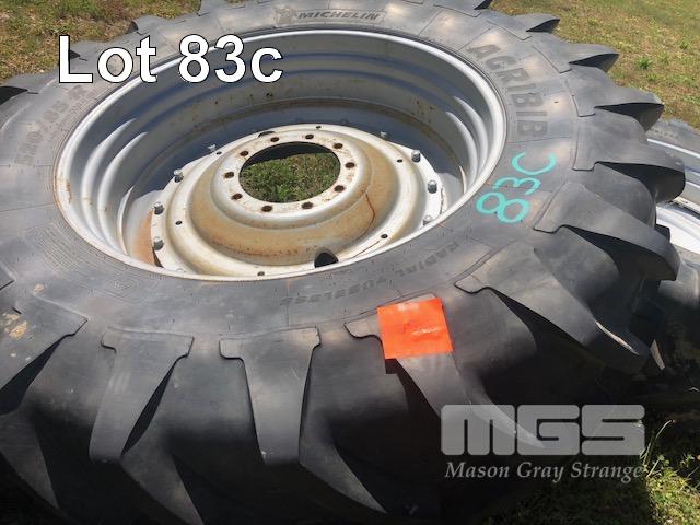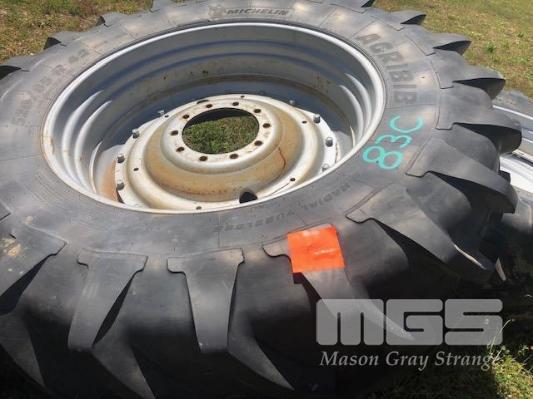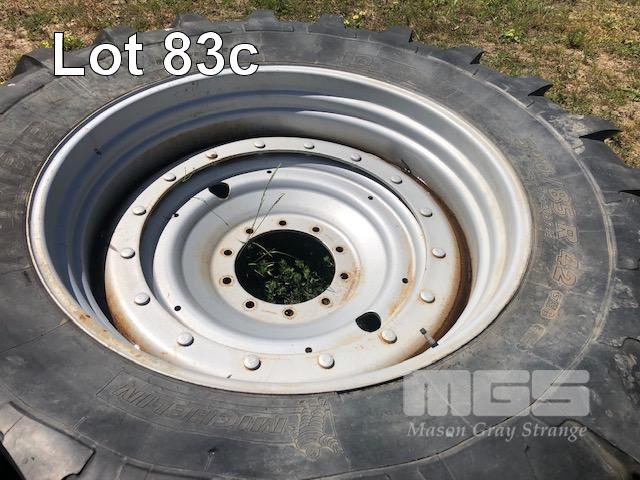 PAIR REAR 10 STUD TRACTOR RIMS & TYRES 13" BETWEEN OPPOSING STUDS 520/85R4 MICHELIN AGRIBIB