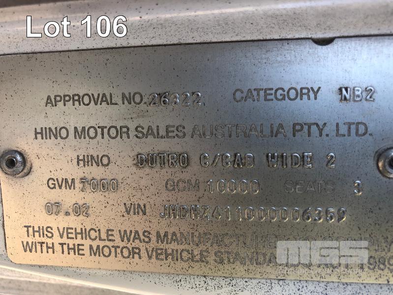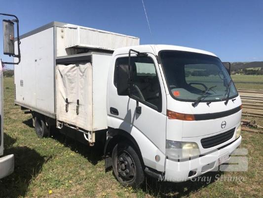 2002 HINO DUTRO REFRIGERATED TAUTLINER REG: 760YCO (QLD) VIN: JHDHZ411000006359 ODO: 396,000 kms APPROX. GVM: 7,000 kg 3.2m LONG REFRIGERATED SECTION & 1.4m LONG STORAGE SECTION . 8.8% BUYERS PREMIUM
