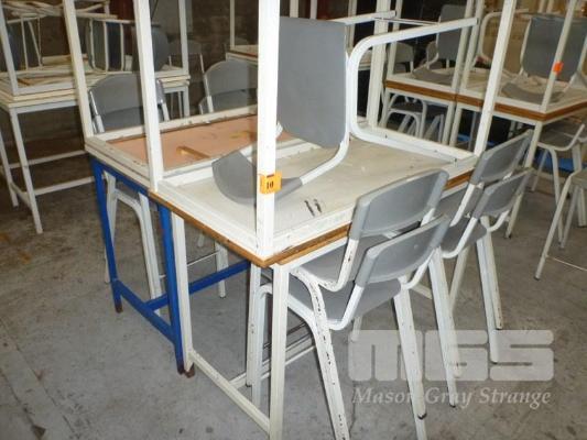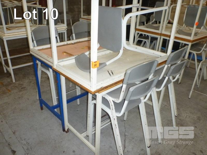 4 x TECH BENCHES, STEEL FRAME, 120 x 60 x 85cm (H) WITH 8 x TECH CHAIRS, 62cm (H)