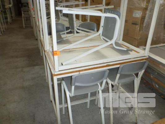 4 x TECH BENCHES, STEEL FRAME, 120 x 60 x 85cm (H) WITH 8 x TECH CHAIRS, 62cm (H)