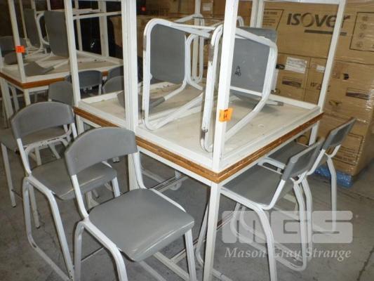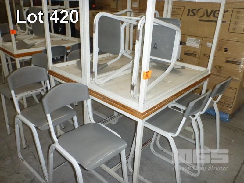 4 x TECH BENCHES, STEEL FRAME, 120 x 60 x 85cm (H) WITH 8 x TECH CHAIRS, 62cm (H)