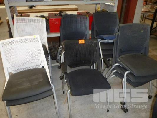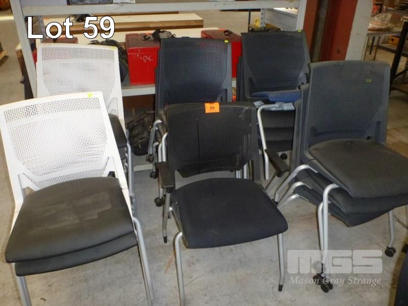 10 x CHAIRS, GREY PVC, GREY FABRIC SEAT & 5 x RECEPTION CHAIRS, WHITE PVC