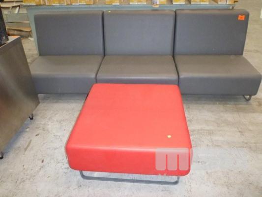 3 PIECE LOUNGE, GREY VINYL & RED VINYL OTTOMAN