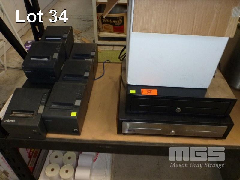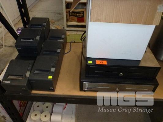 2 x CASH DRAWERS (NO KEYS) & 6 x DOCKET PRINTER WITH QUANTITY PAPER ROLLS