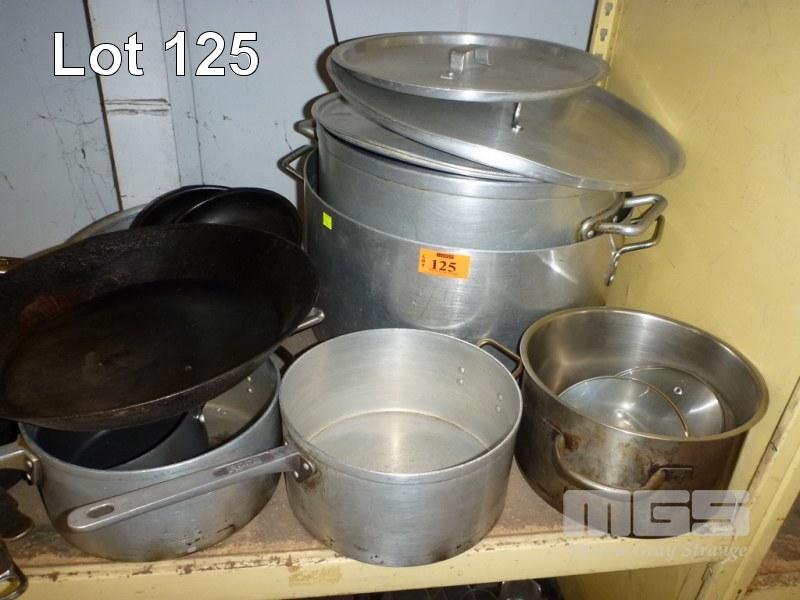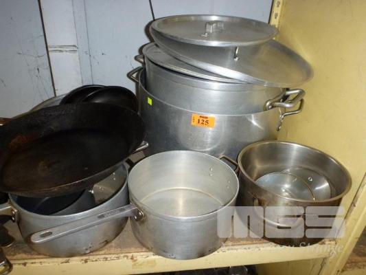 ASSORTED STOCK POTS, SAUCEPANS & FRY PANS, ETC