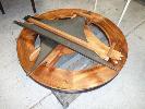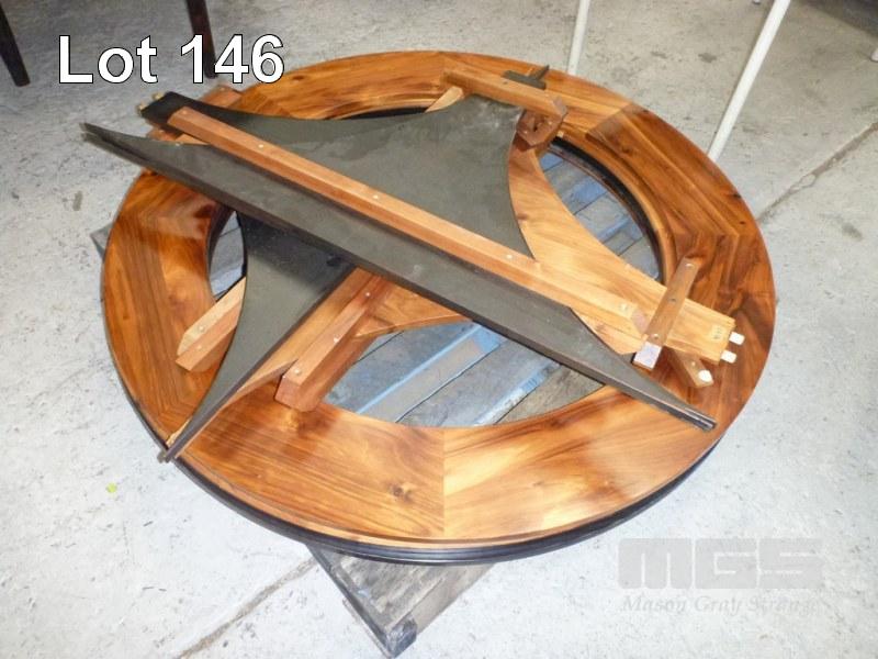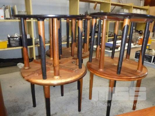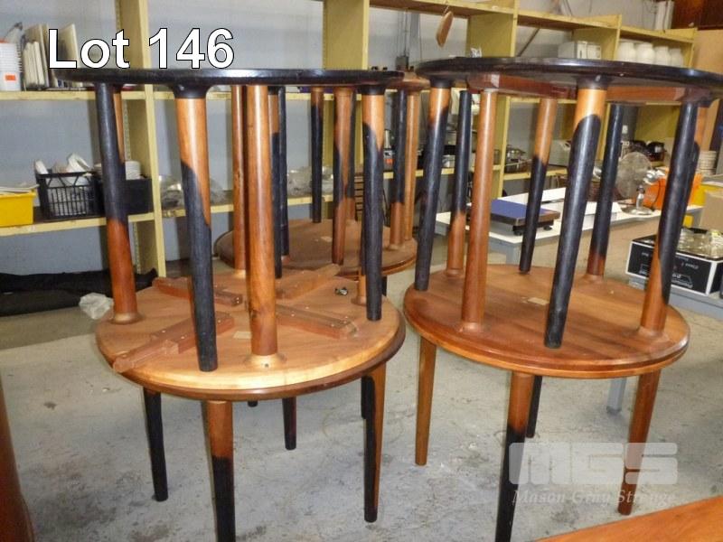 11 x CAFE TABLES, 100cm DIAMETER, BURNT LOOK TIMBER WITH 5 x CIRCULAR EXTENSIONS & CONNECTORS