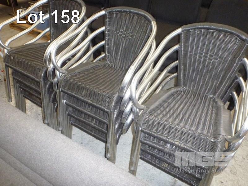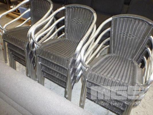 12 x OUTDOOR CHAIRS, ALUMINIUM FRAME, BLACK RATTAN INLAY