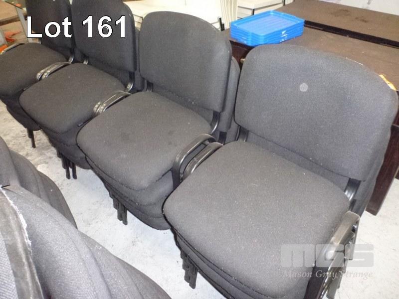 16 x STACKABLE DINING /FUNCTION CHAIRS, BLACK FABRIC, BLACK STEEL FRAME