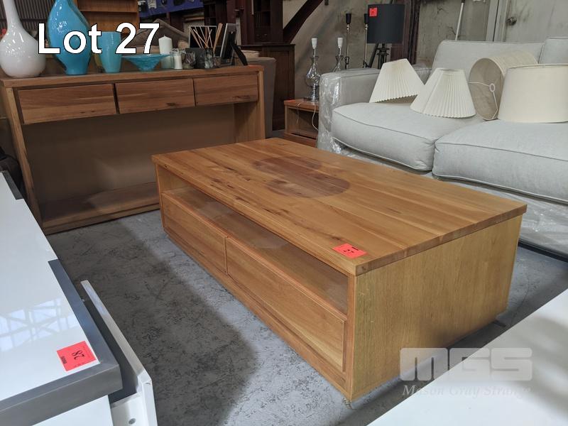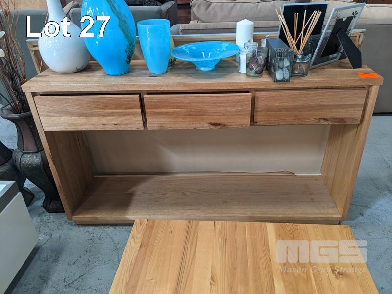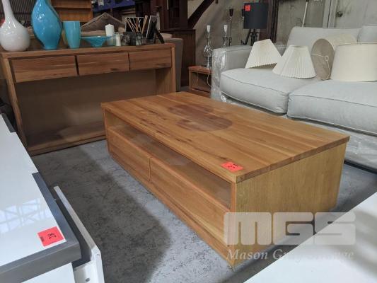 SOLID TIMBER COFFEE TABLE, 2 x DRAWER, 140 x 70cm, 3 x DRAWER BUFFET, 140 x 35cm & MATCHING SIDE TABLE, 1 x DRAWER