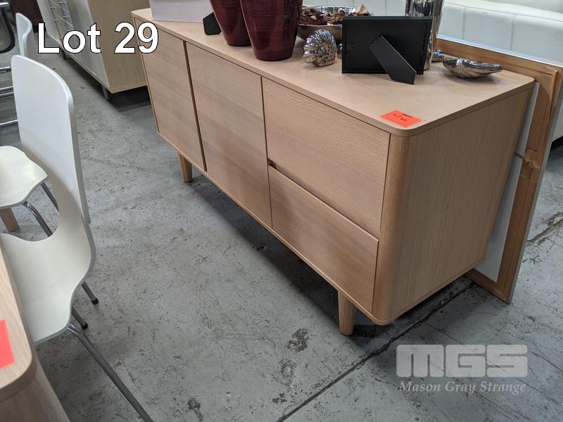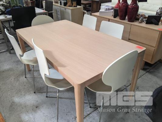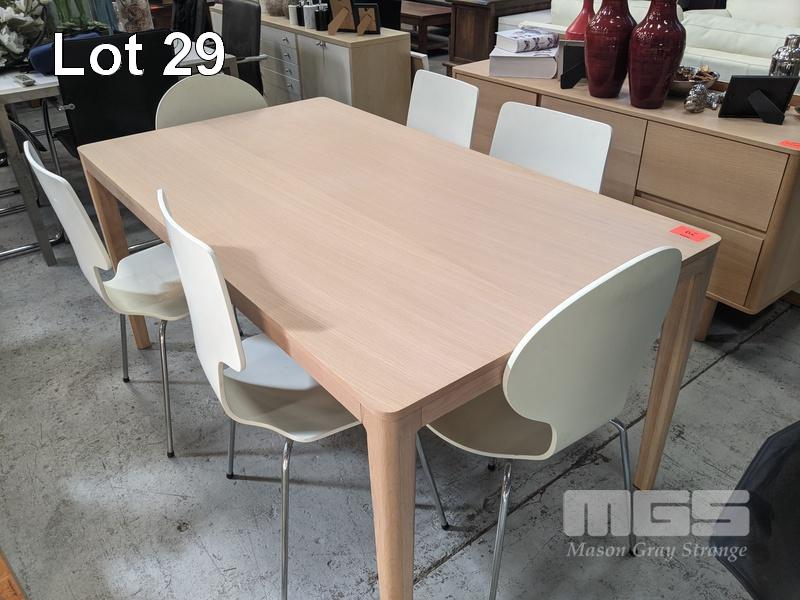 DINING TABLE, NATURAL WOOD FINISH, 6 x CHAIRS & MATCHING 2 x DRAWER BUFFET