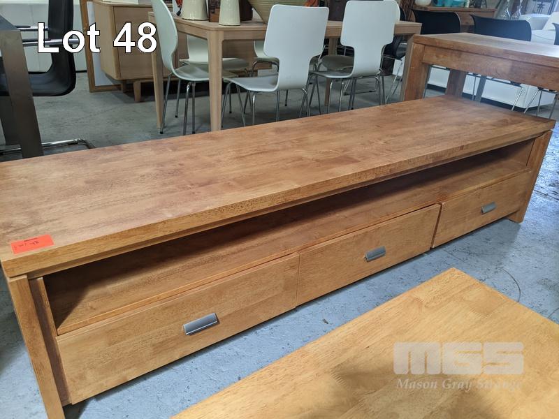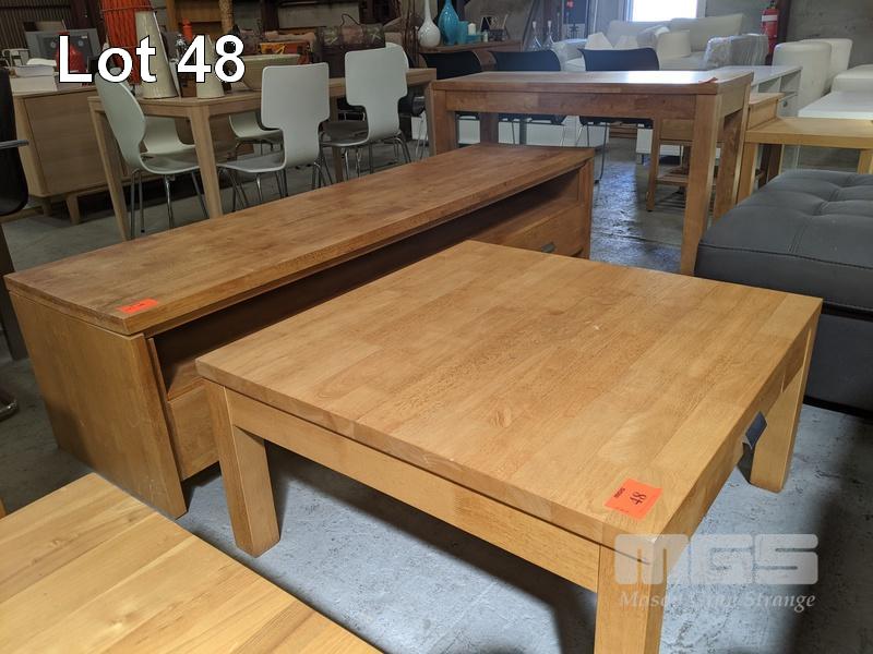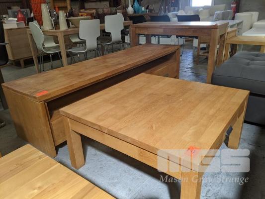 SOLID TIMBER COFFEE TABLE,90 x 90cm, MATCHING 3 x DRAWER ENTERTAINMENT UNIT, 210 x 55cm & MATCHING SIDE TABLE, 125 x 45cm