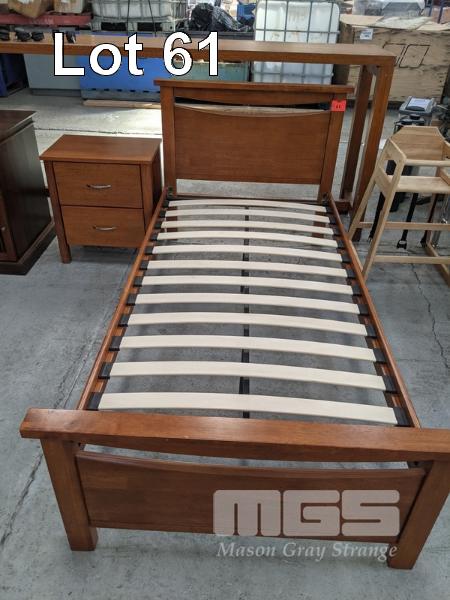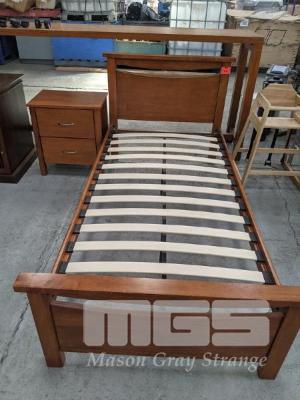 SOLID TIMBER SINGLE BED FRAME & MATCHING SIDE TABLE