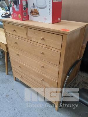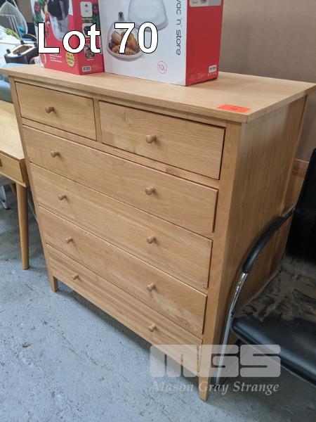 6 x DRAWER NATURAL TIMBER DRESSER, 105 x 51cm