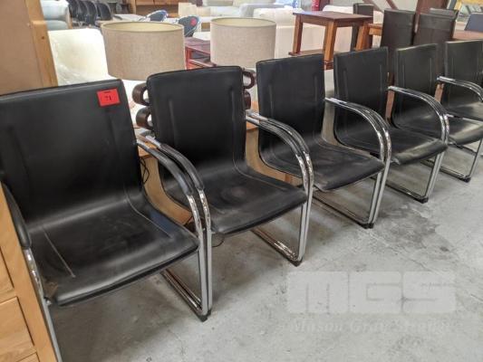 6 x DINING CHAIRS, CHROME FRAME, LEATHER LOOK SEATS