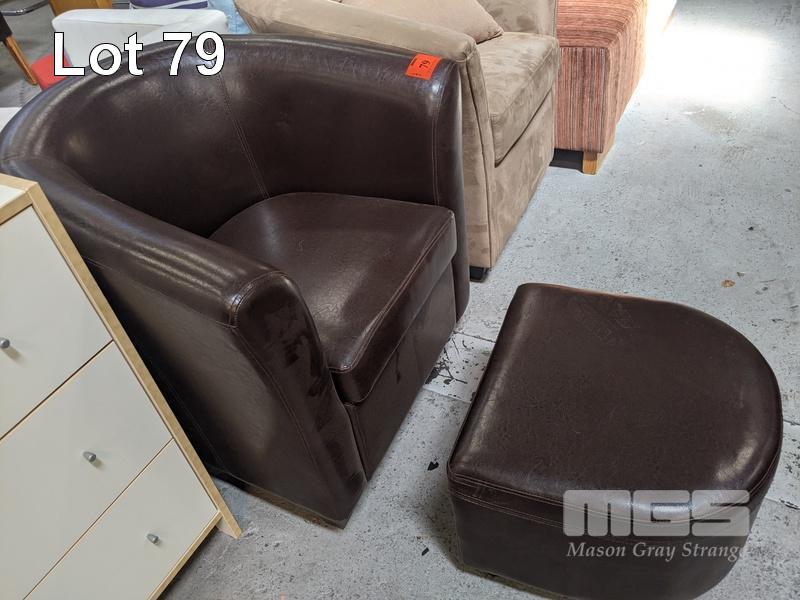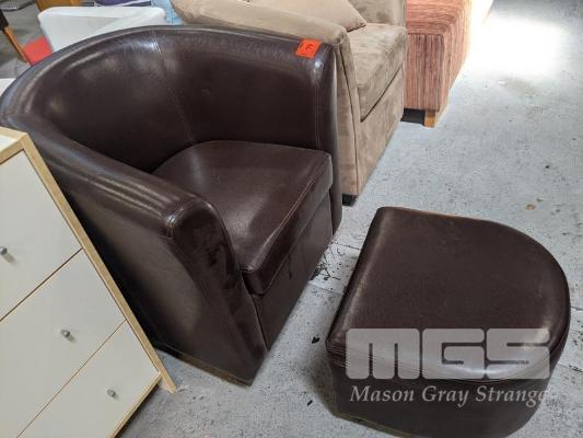 LEATHER LOOK TUB CHAIR WITH FOOT STOOL