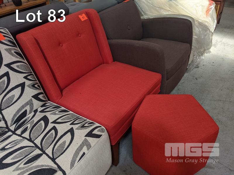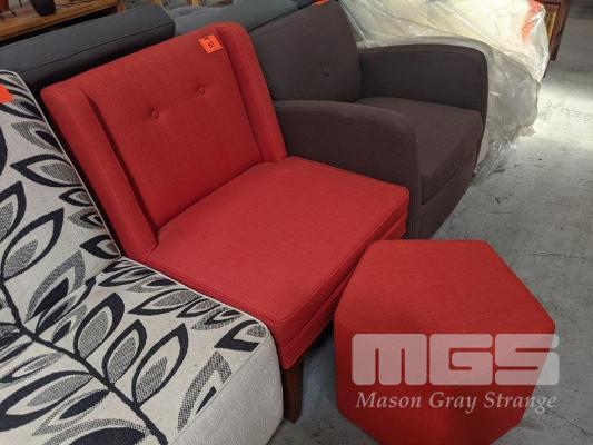 FABRIC ARM CHAIR, RED WITH MATCHING PENTAGON FOOT STOOL