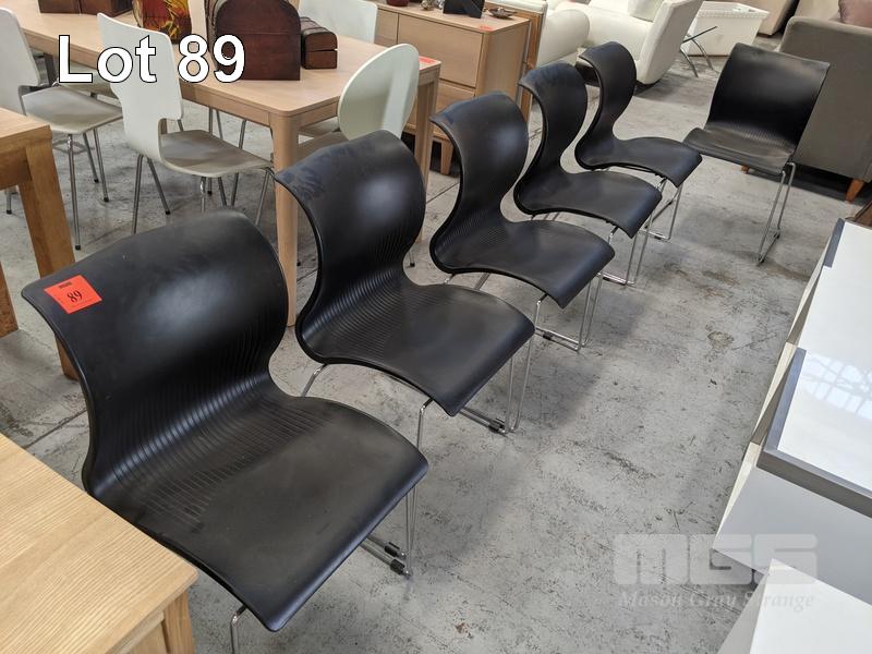 6 x DINING CHAIRS, CHROME STEEL LEGS & BLACK MOULDED PLASTIC SEAT