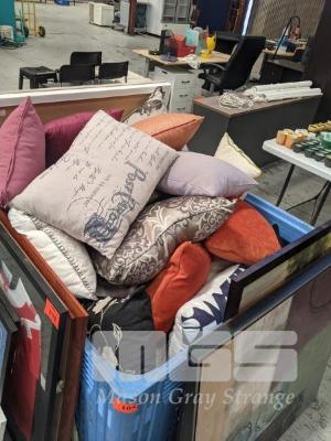 LARGE QUANTITY SCATTER CUSHIONS & THROW PILLOWS, 1 x CRATE CRATE NOT INCLUDED