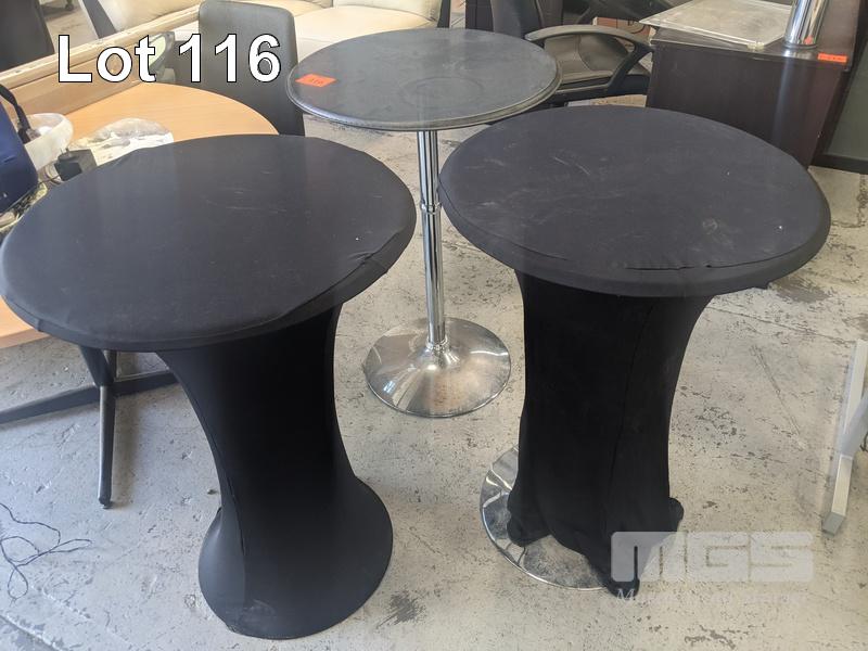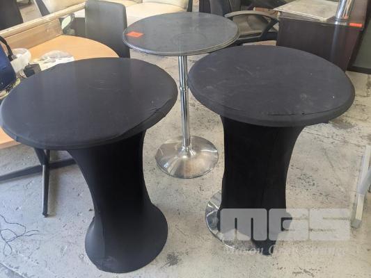 3 x ROUND BAR TABLES (TWO WITH COVERS).