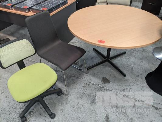 ROUND OFFICE TABLE, 120cm DIAMETER & 2 x CHAIRS