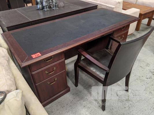 ANTIQUE STYLE DESK, 165 x 75cm, 6 DRAWER & CHAIR