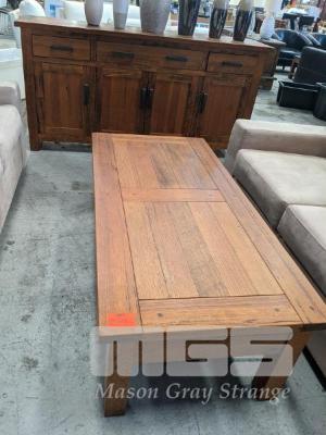 SOLID TIMBER COFFEE TABLE, 140 x 67cm & MATCHING BUFFET, 182 x 45cm, 4 x DRAWER/DOOR