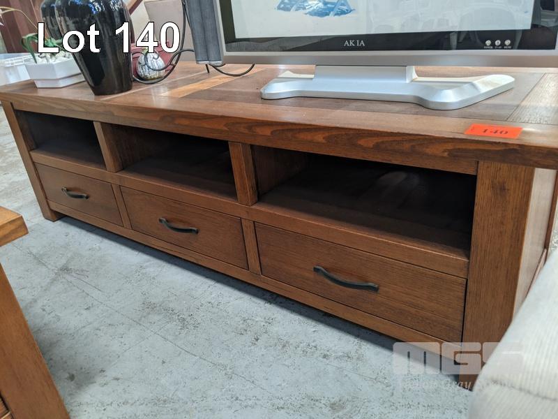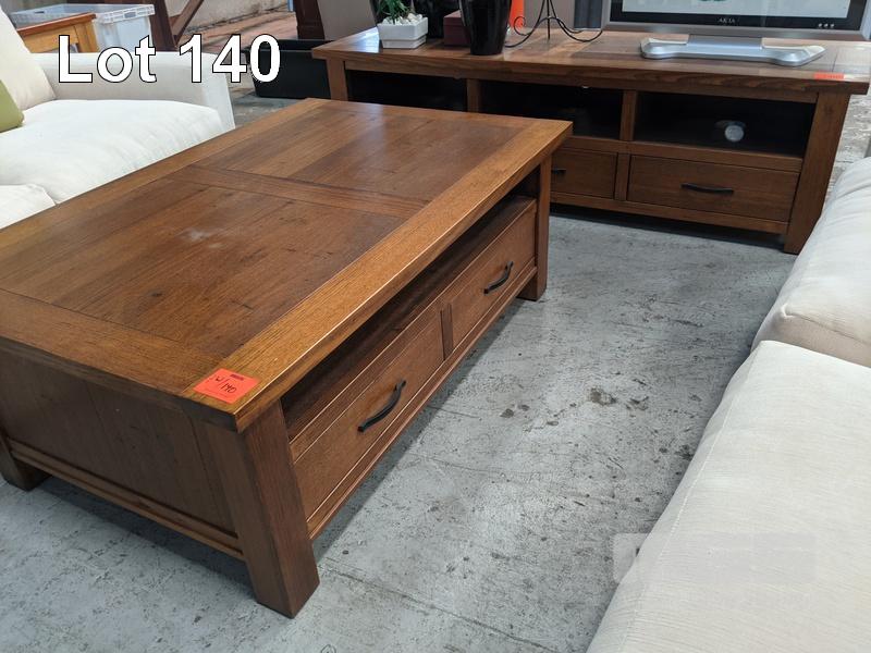 SOLID TIMBER COFFEE TABLE, 130 x 85cm & MATCHING ENTERTAINMENT UNIT, 180 x 55cm, 3 x DRAWER