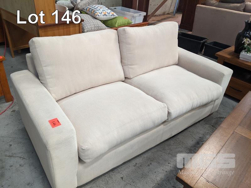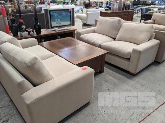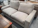 LOUNGE SUITE COMPRISING PAIR 2 SEATER FABRIC SOFAS, LIGHT BROWN