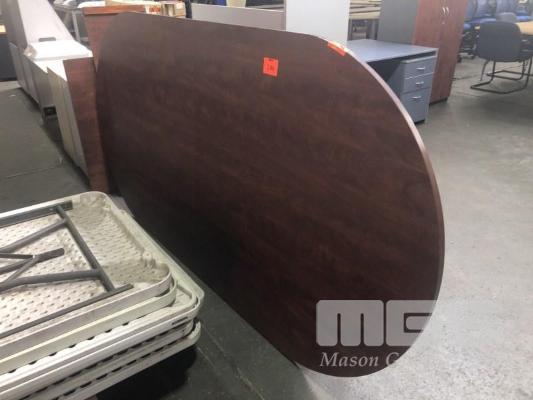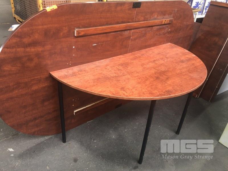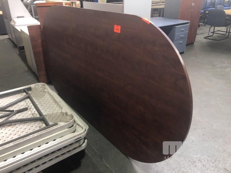 6 CHAIR BOARD ROOM TABLE, WALNUT FINISH, 2400 x 1200mm & SEMI CIRCLE SIDE TABLE, 1500mm (L)