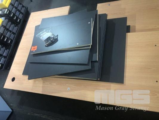 2 x PINE/GREY LAMINATE DESKS, FLAT PACKED, 1800 x 1200mm