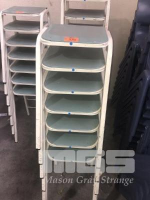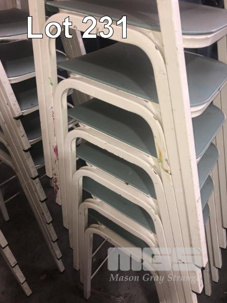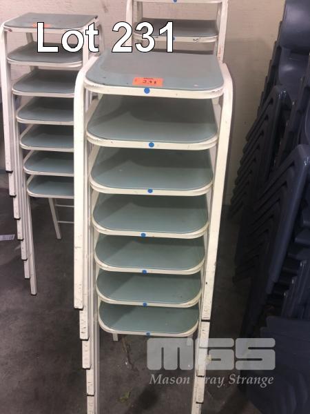 7 x STUDENTS STOOLS, PLASTIC SEAT, STEEL FRAME