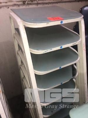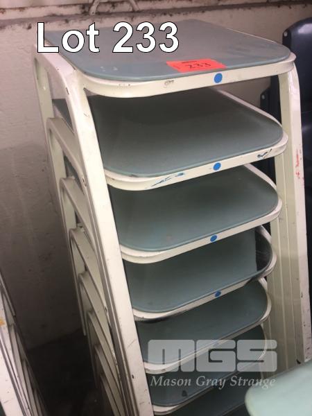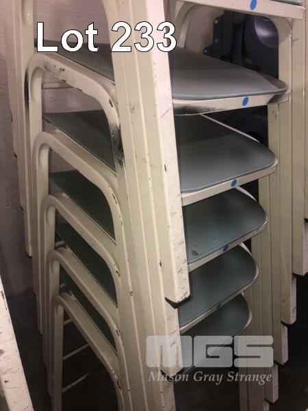 8 x STUDENTS STOOLS, PLASTIC SEAT, STEEL FRAME