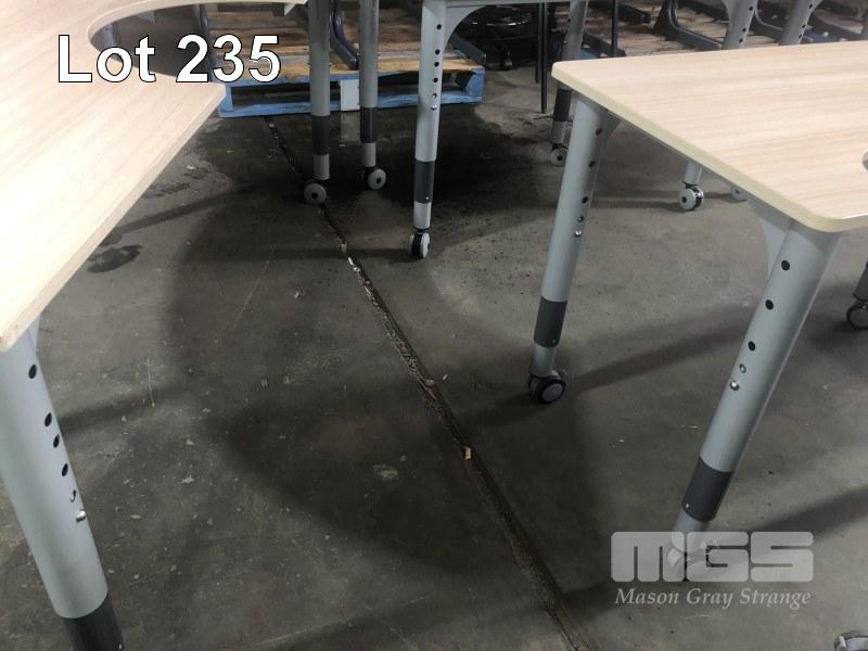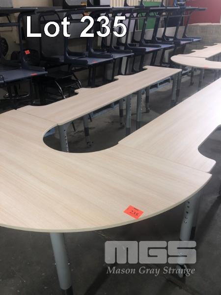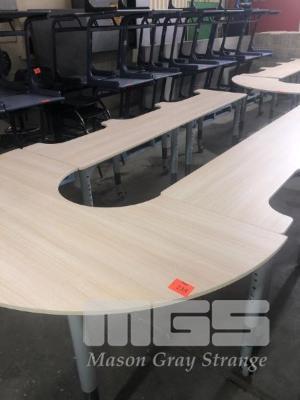 6 STUDENT WORK STATION( 2 DESKS), ADJUSTABLE HEIGHT, MOBILE, WITH 180 DEGREE RETURN, PINE LAMINATE, STEEL FRAME, OVERALL LENGTH 3.3 x 1.8m, DESKS, 2400 (L) x 600mm (D)