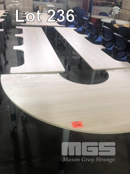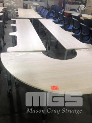 6 STUDENT WORK STATION( 2 DESKS), ADJUSTABLE HEIGHT, MOBILE, WITH 180 DEGREE RETURN, PINE LAMINATE, STEEL FRAME, OVERALL LENGTH 3.3 x 1.8m, DESKS, 2400 (L) x 600mm (D)