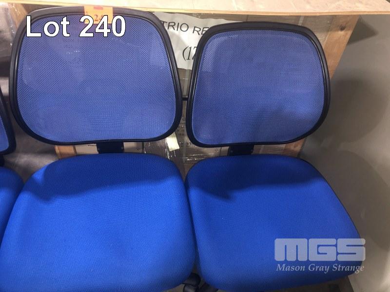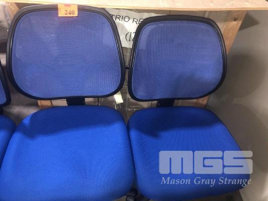 2 x GAS LIFT BLUE ON BLACK STUDENTS CHAIRS, MOBILE, CLOTH BASE, MESH BACK
