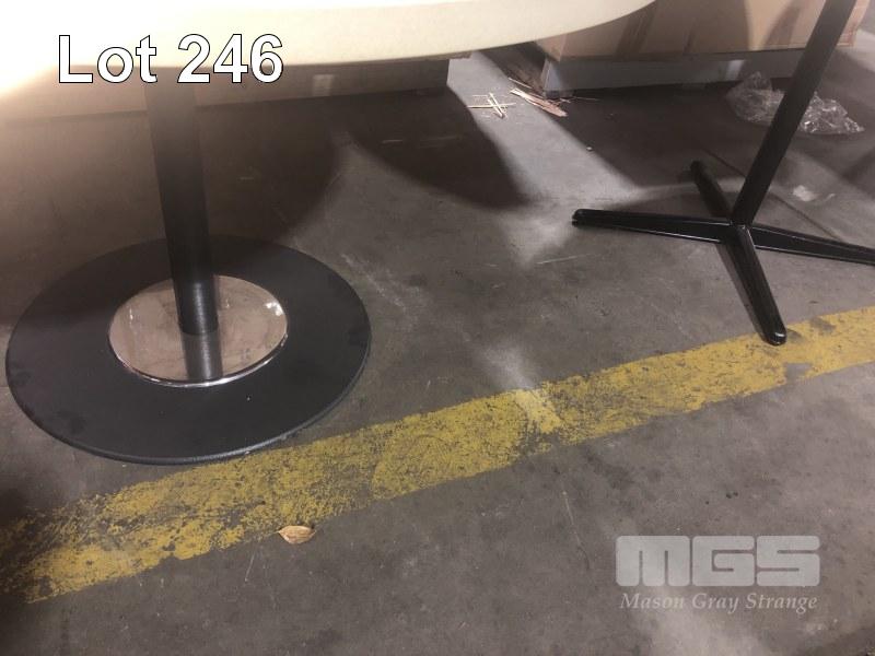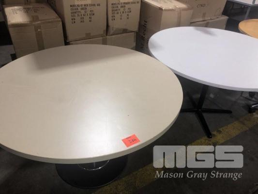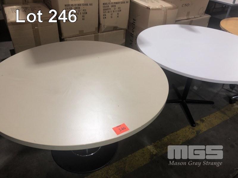 2 x CIRCULAR MEETING TABLES, LAMINATE TOP, 1200mm DIAMETER, STEEL BASES