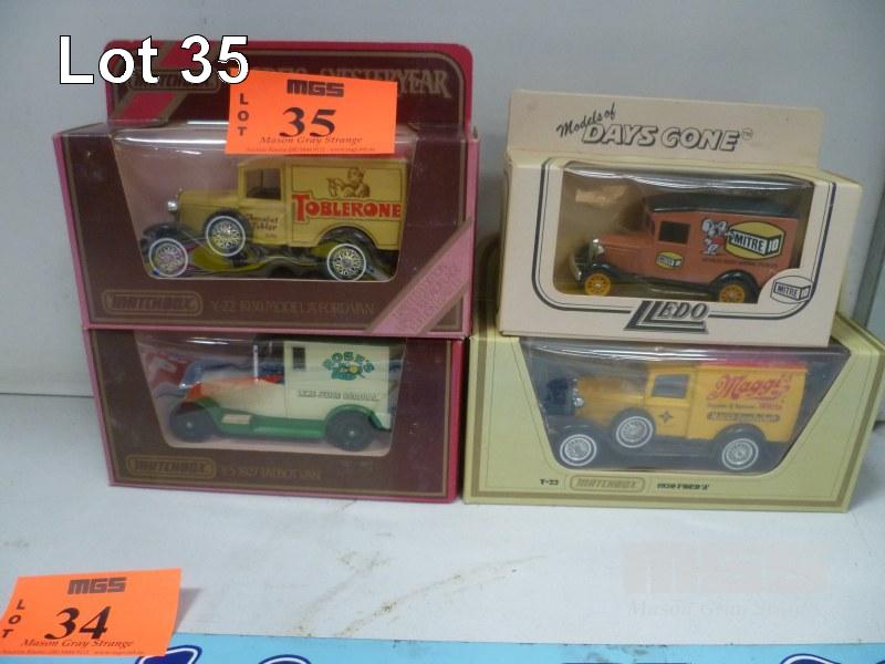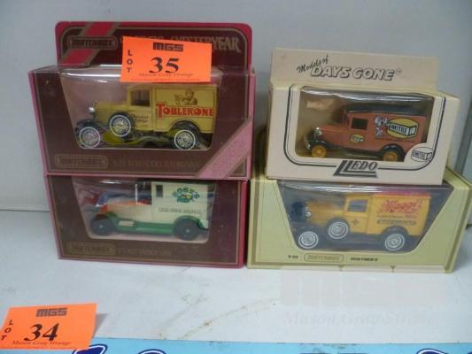 3 x DIECAST MATCHBOX MODELS OF YESTERYEAR VEHICLES, SCALE 1:35 & 1 x MODELS OF DAYS GONE DIECAST VEHICLE