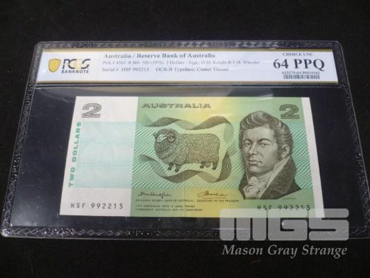 1976 $2.00 NOTE CENTRE THREAD KNIGHTS WHEELER CHOICE UNC 64