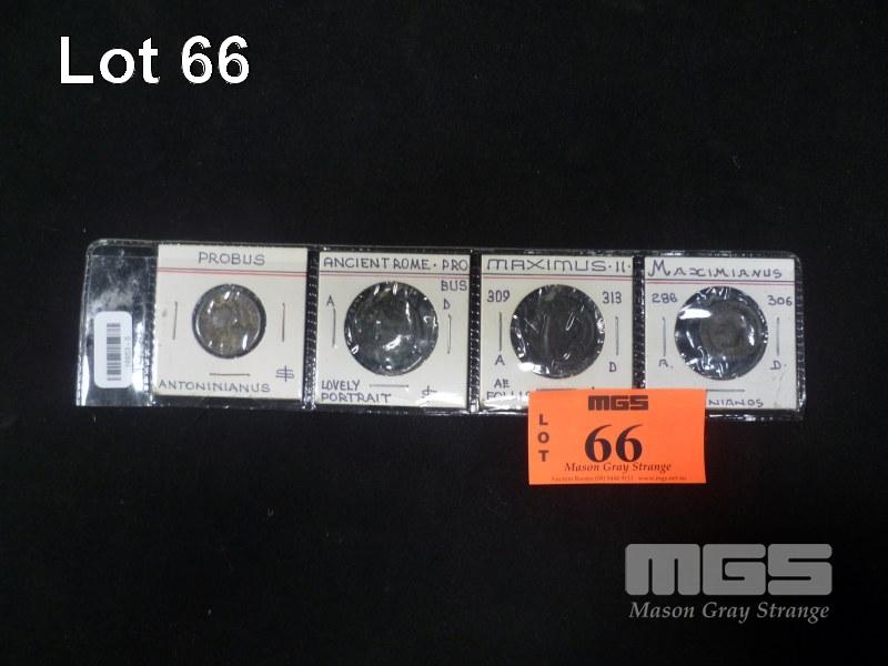 4 X ROMAN COINS, PROBUS ANTONINIANUS, ANCIENT ROME PROBUS, MAXIMUS II, MAXIMIANUS
